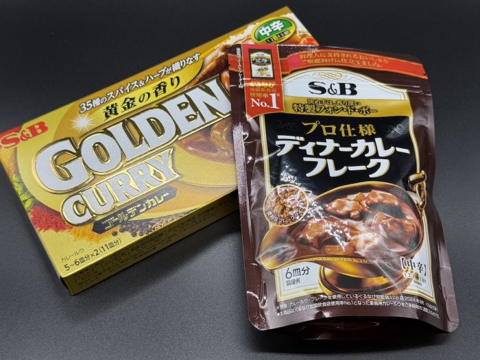 続いて「ゴールデンカレー 198g 中辛」と「プロ仕様 ディナーカレーフレーク 中辛」が出てきた。