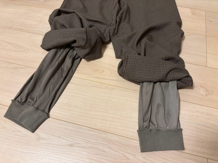 店頭にあったのは3色中2色(ブラック/ブラウンチェック)。試着した瞬間、即決した。