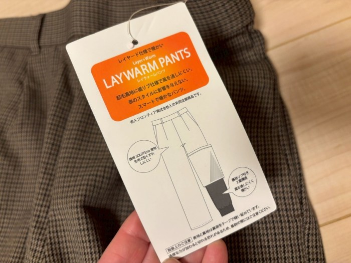 商品名は「レディースソロテックス(R)使用レイウォームワイドパンツ(2500円)」