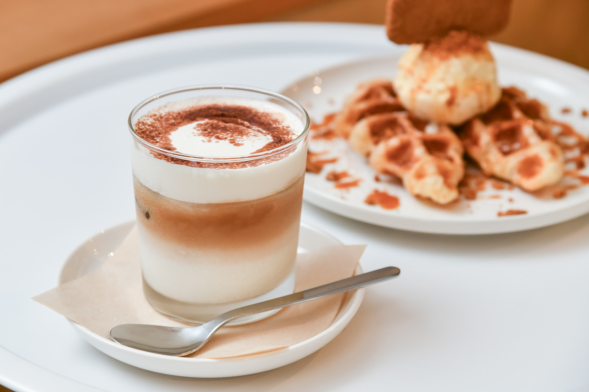 洗練のミニマルカフェで、クリームラテとクロッフルを