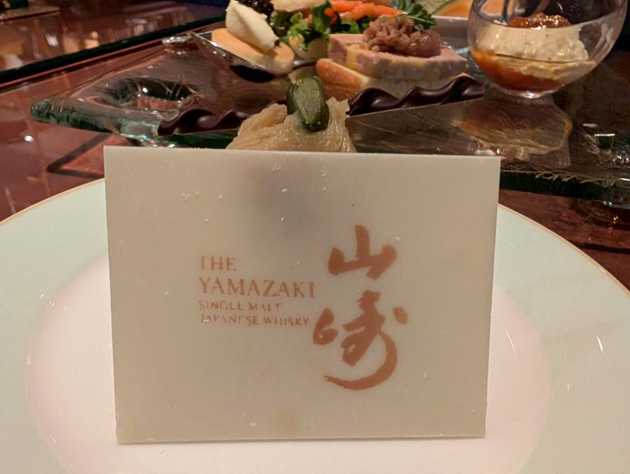 「山崎」と書かれたホワイトチョコが添えられ、目を引く一品。