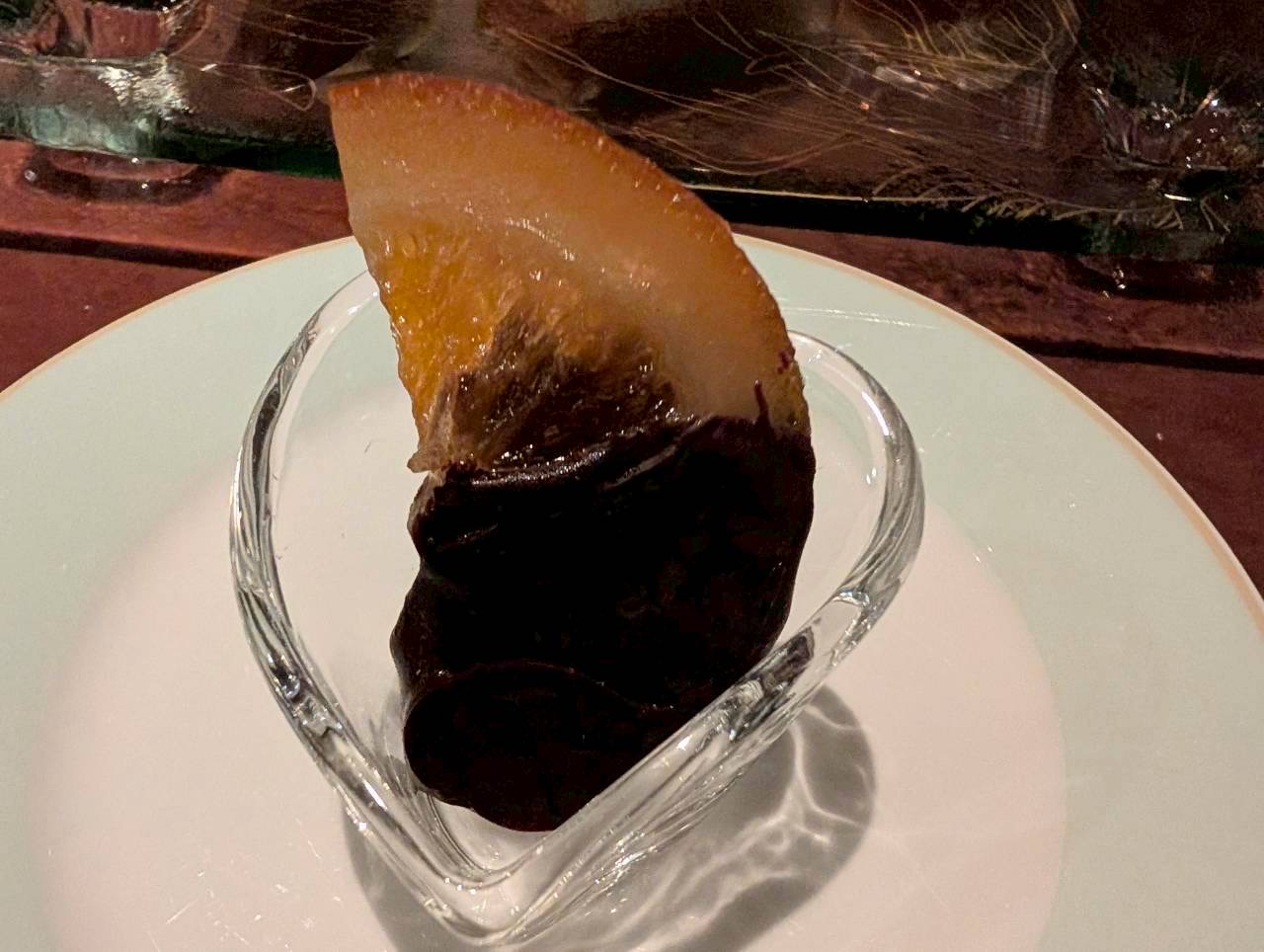 ひと口で、ふわっとお酒の香りが広がり、チョコと柑橘のほろ苦さがそれを引き締める感じです。