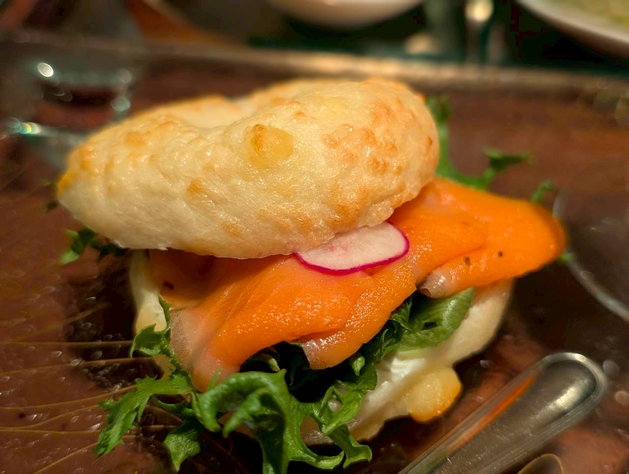 ほんのりROKUが香るベーグルに、スモークサーモンの旨みがじわり。