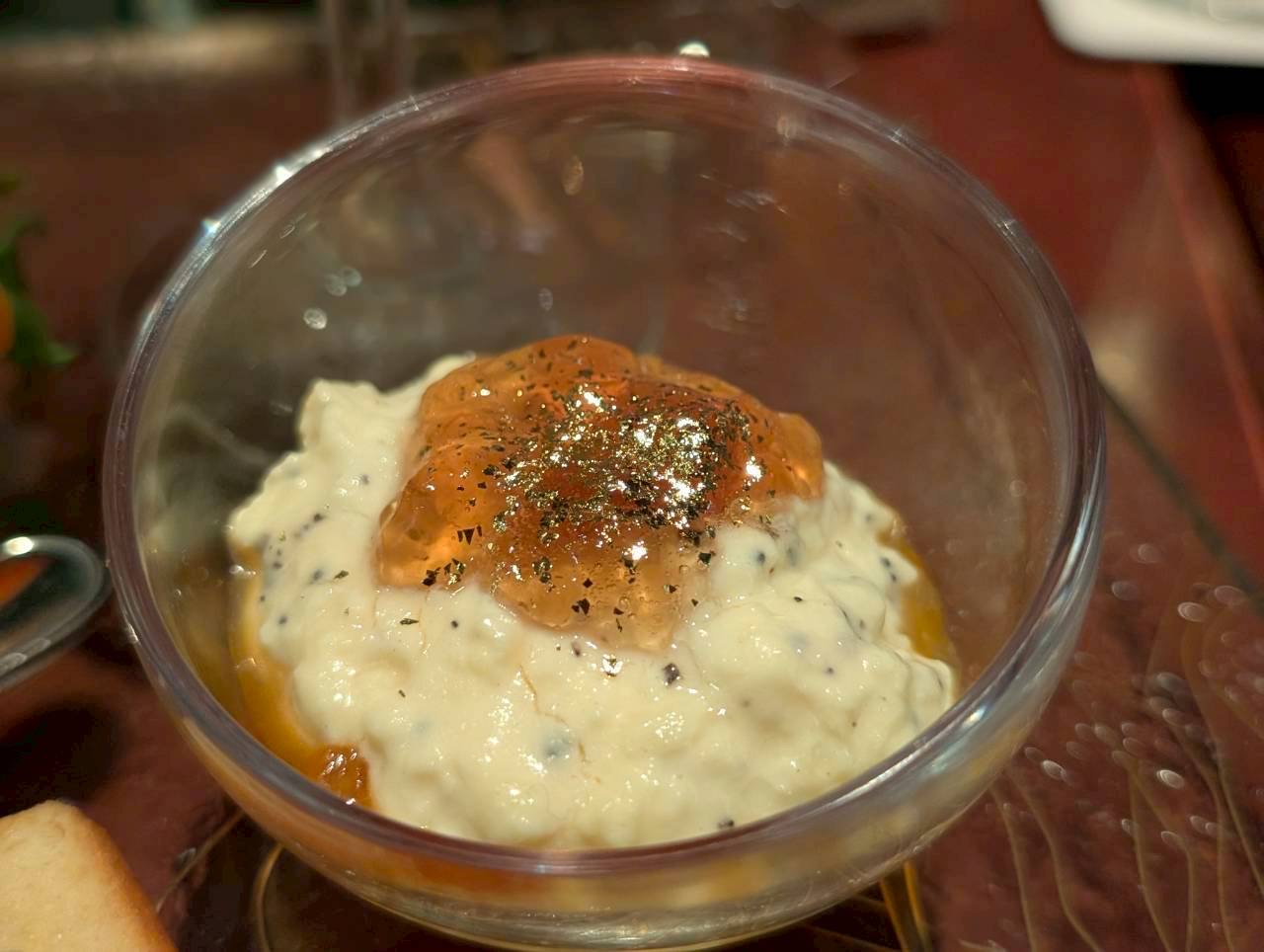 フォアグラの濃厚なコクと、栗のやさしい甘さが意外にも好相性で驚きでした。