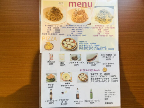 メニューはこちら。パスタは「赤:特製ミートソース」と「白:特製ホワイトミートソース」が定番メニュー。「豚ホホ肉のミートソース」は期間限定で、季節によって変更するんだとか。