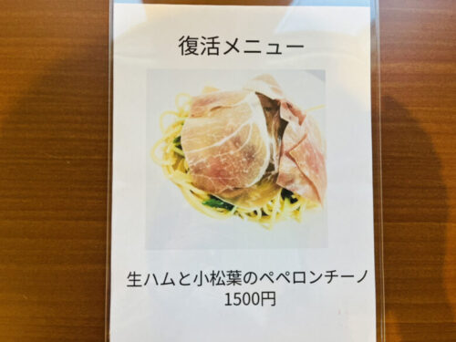 「ミートソース専門店」にリニューアル後も、「昔のメニューも良かったなぁ」という常連の女性客や家族連れのお客様の声もあり、【復活メニュー】も登場していました。