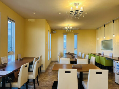 内観はシンプルでお洒落な空間。2人用テーブルが6つ、4人用テーブルが1つ、カウンター席が8席あります。