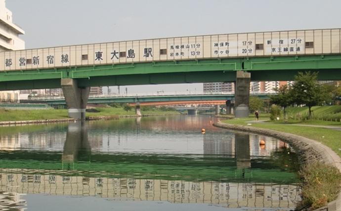 旧中川と繋がる小名木川も、今年は開幕から好調。こちらもクローバー橋を中心に番所橋、丸八橋等、橋の下で釣りができるポイントが点在しています。