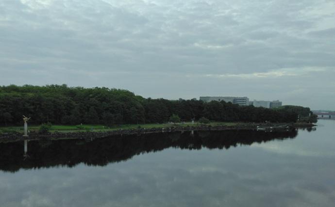 さらにこの周辺には、おしなり橋、京成橋といった日よけになる橋があり、日影で釣りが楽しめる点も、暑い夏、そして残暑が厳しい秋(プラスして雨の日)にとても重宝する釣り場です。