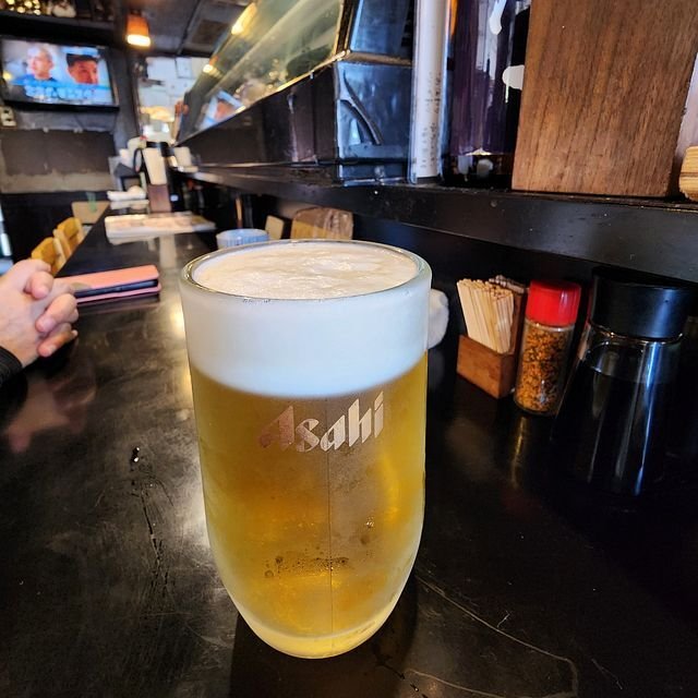 ま、いつものように「生ビール」¥500!からゆるゆるとスタート。いきなり開店と同時で満席になったので、キッチン内はてんてこ舞い。大将とサブのお兄さん、女将さんの3名体制なのですが、これは直ぐにお料理は出てこないだろうと・・・