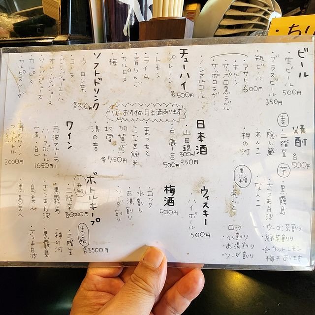 半分ほどビールが空いた時点で、「お酒メニューを見せてもらっていいですかねえ?」と確認。酒代も非常に良心的で、この裏メニューに・・・