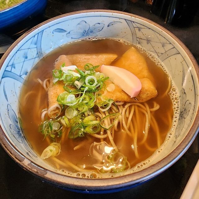 御寿司を半分ほど食べた時点で麺類も登場。こちらは私チョイスで甘きつね¥200をトッピングした「きつねそば」ですな。しっかりとしたダシの香りがめっちゃ旨そう!塩分も適切。寿司も旨いのですが、この蕎麦も超ウマ。
