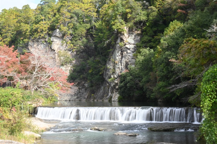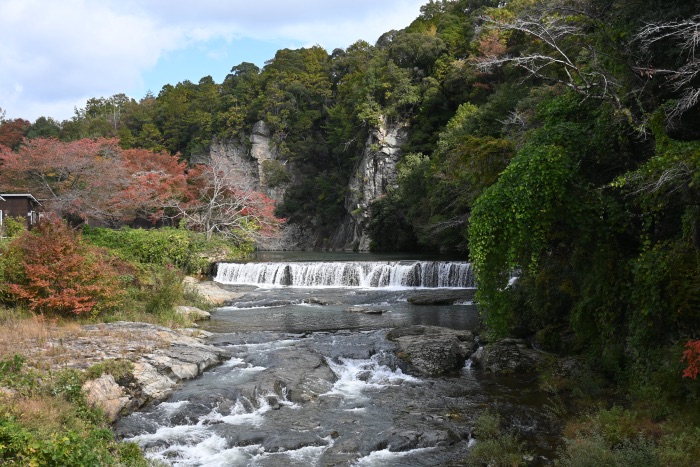 下流から望める、小さな滝とのコラボレーションもなかなか良し♪滝の様子は「黒滝」にもすこ〜し似た風景です。
