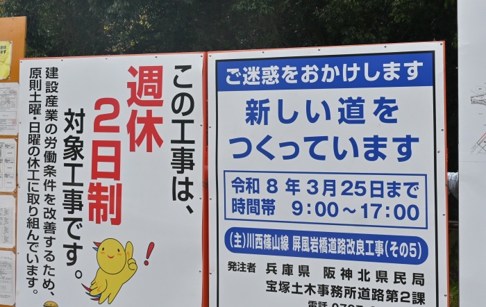 三田方面からは北摂里山街道(県道86号線)を、川西方面からは猪名川渓谷ライン(県道12号線)を走り30分ほど。現地に駐車場はないので、『道の駅いながわ』を利用して徒歩で向かいます。