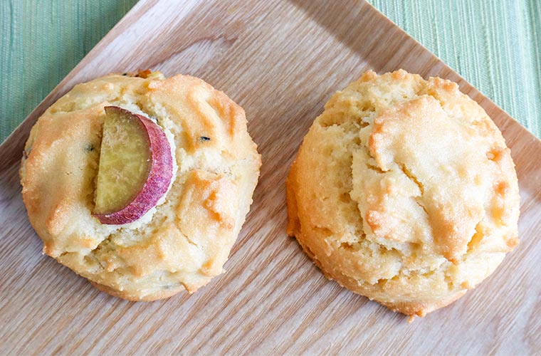 左から『さつまいもの米粉スコーン』240円 ※秋季限定、『米粉のスコーン』190円
