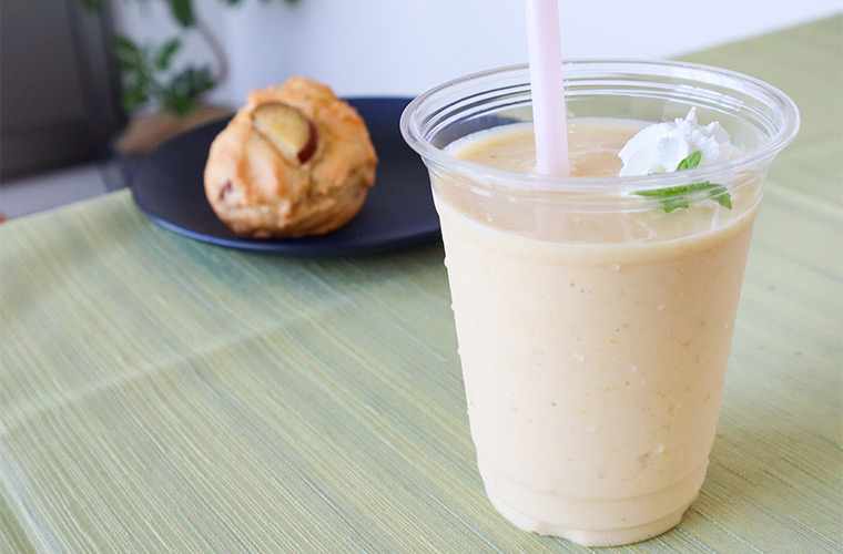おむすびや米粉スイーツと一緒にいただきたい『フルーツミックスジュース』もスタンバイ。バナナとリンゴ、パイナップル、ミカン、モモをブレンダーにかけて店内で手作りしたジュースは、砂糖は使わずフルーツ自体の甘みを最大限に生かした自然な味わい。トロリとした懐かしの飲み心地で、フルーツの爽やかなおいしさを味わい尽くしてみて♪