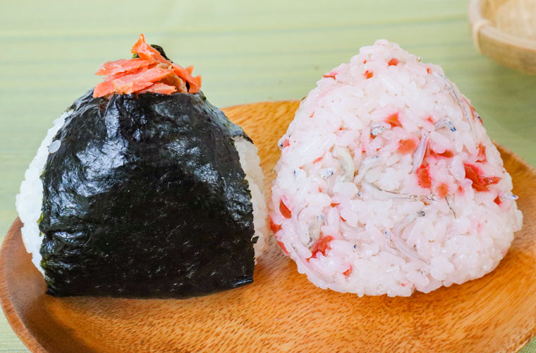 左から『 鮭の海苔おむすび』250円、『梅ちりめんおむすび』250円 ※日替わり