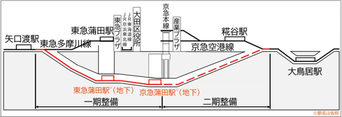 運行区間:渋谷方面~多摩川駅~蒲田駅~蒲田新駅(仮称)