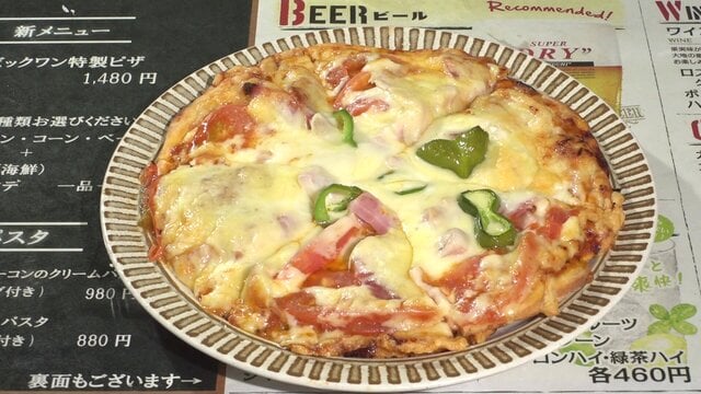新名物「ビッグワン特製ピザ」は、手作りの厚め生地が自慢。マスター五十嵐さんの新たな挑戦から生まれた人気メニューです。