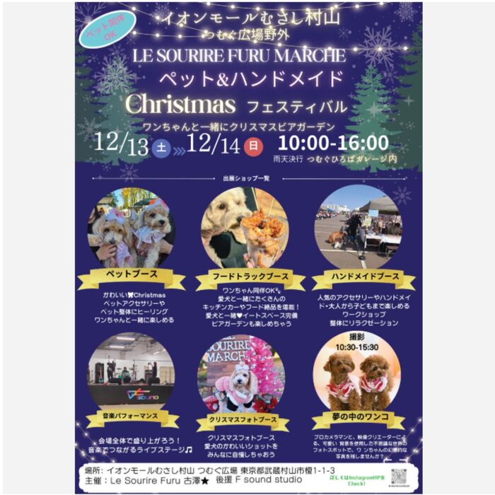 12月13日(土)・12月14日(日)は屋外イベント会場のつむぐひろばで、ペットと楽しめるクリスマスイベントを開催。