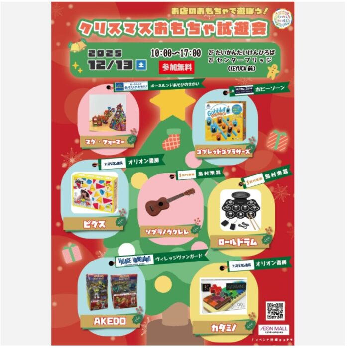 12月13日(土)にはイオンモールむさし村山のお店で売っているおもちゃをお試しできるイベント、