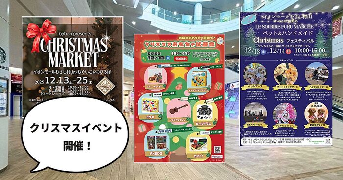 さて、12月13日(土)からイオンモールむさし村山ではクリスマスイベントがたくさん開催されます。