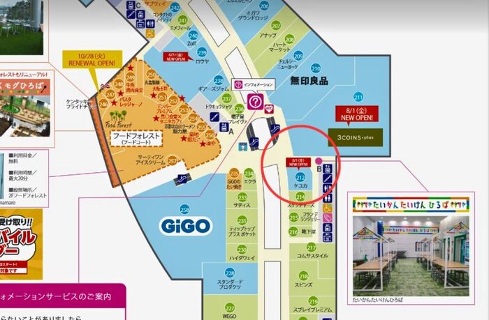場所は『ボーネルンドあそびのせかい』があるセンターコート東入口から出て、アーケードをくぐった先です。
