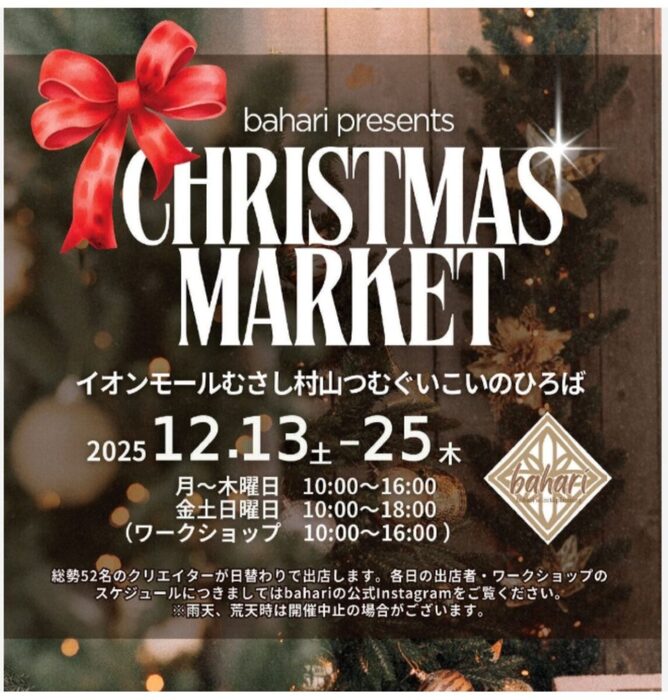 以上、イオンモールむさし村山で12月13日(土)から開催されるクリスマスイベントをまとめてみました。