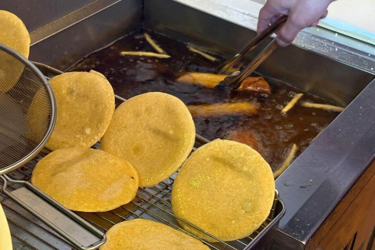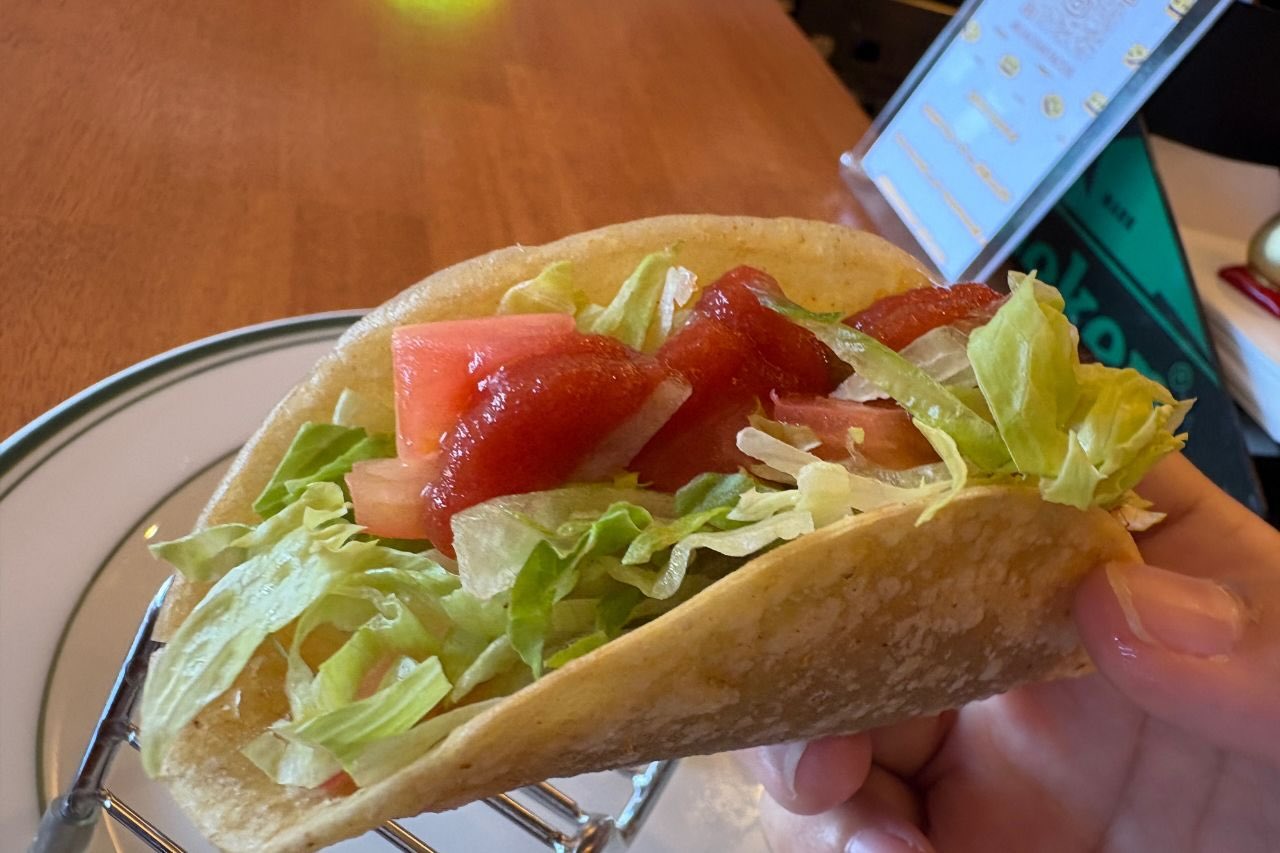 まず注文したのは、やはり店名にもなっている「タコス」。 なんと皮はすべて店内仕込み。オーダーが入ってから一つひとつ揚げてくれるので、揚げたての香ばしさが店内に広がります。