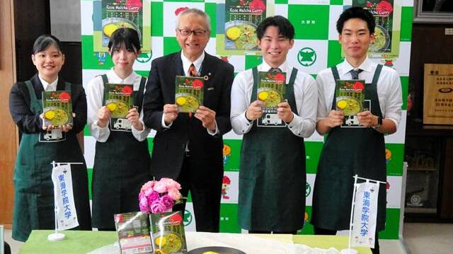10月28日に市役所で開かれたお披露目会で建部さんは「約半年かけてこだわり抜いた商品。若い方に手に取ってもらいやすいように流行を取り入れた」と説明。小野さんは「多くの方に手にとっていただき、小田原を感じてほしい」、山室さんは「スポンジの甘さとお茶の苦みが絶妙なバランスに仕上がった。ぜひ足柄茶とともに楽しんでほしい」と話した。