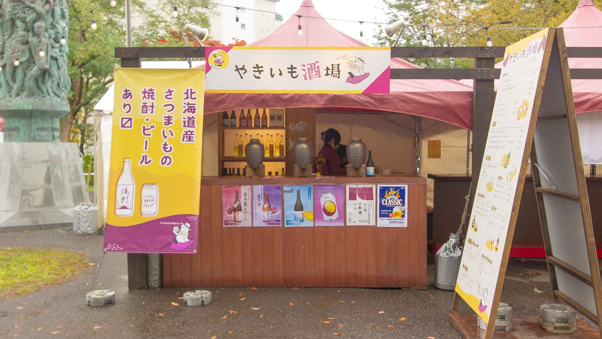 会場には立ち飲みスタイルのアルコールブースも。クラフトビールは札幌の「ストリートライト・ブルーイング」で醸造する「ムーン・シャイン」。ローストした紅はるかを使った黒ビールで、心地良いロースト感やキャラメルのような味わいが広がります。