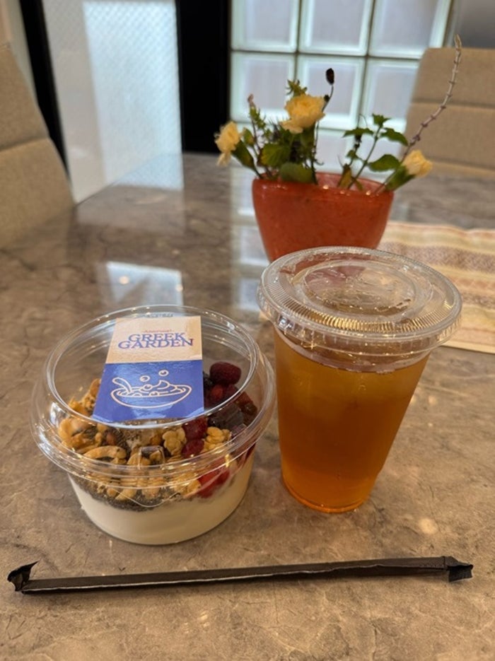 続けて「カスタマイズできるヨーグルトにした!」と述べ「ヨーグルトの量も選べます。多めにして 真ん中にあるのがマヌカハニー。ベリーとチアシード、ナッツそして自家製グラノーラ。これらをトッピング」と写真とともに説明。「最高に美味しいやっぱ、ヨーグルトはいいなぁ」と絶賛した。