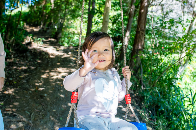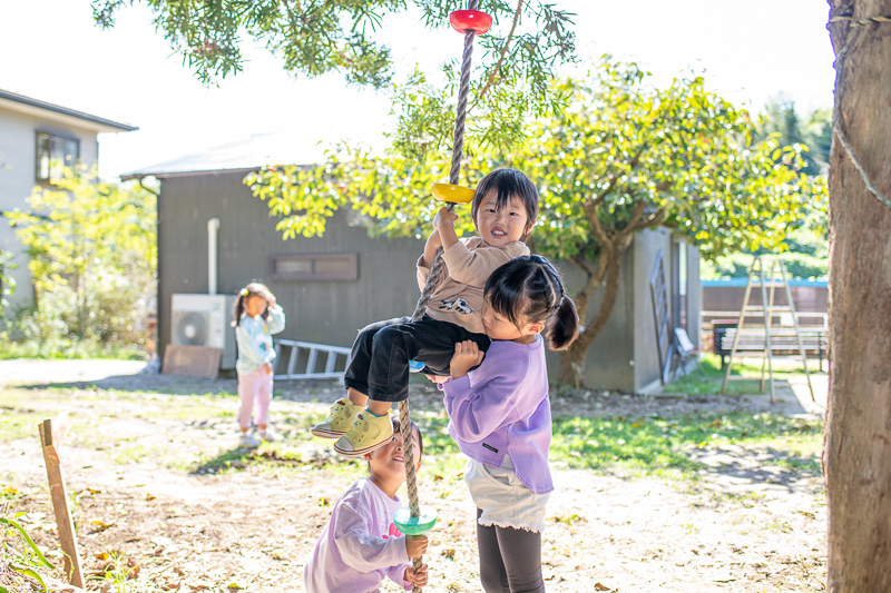 敷地内には、ロープ遊具やブランコ、ガリバートンネルなどの手作り遊具があちこちに。