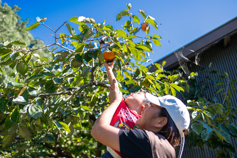 野菜の収穫体験もできます。無人販売ならぬ、まさかの「無人収穫体験」。設置ポストに自分でお金を入れて、自分で自由に収穫。取材のときには、「柿1つ100円」と「カブ5つ100円」がありました。