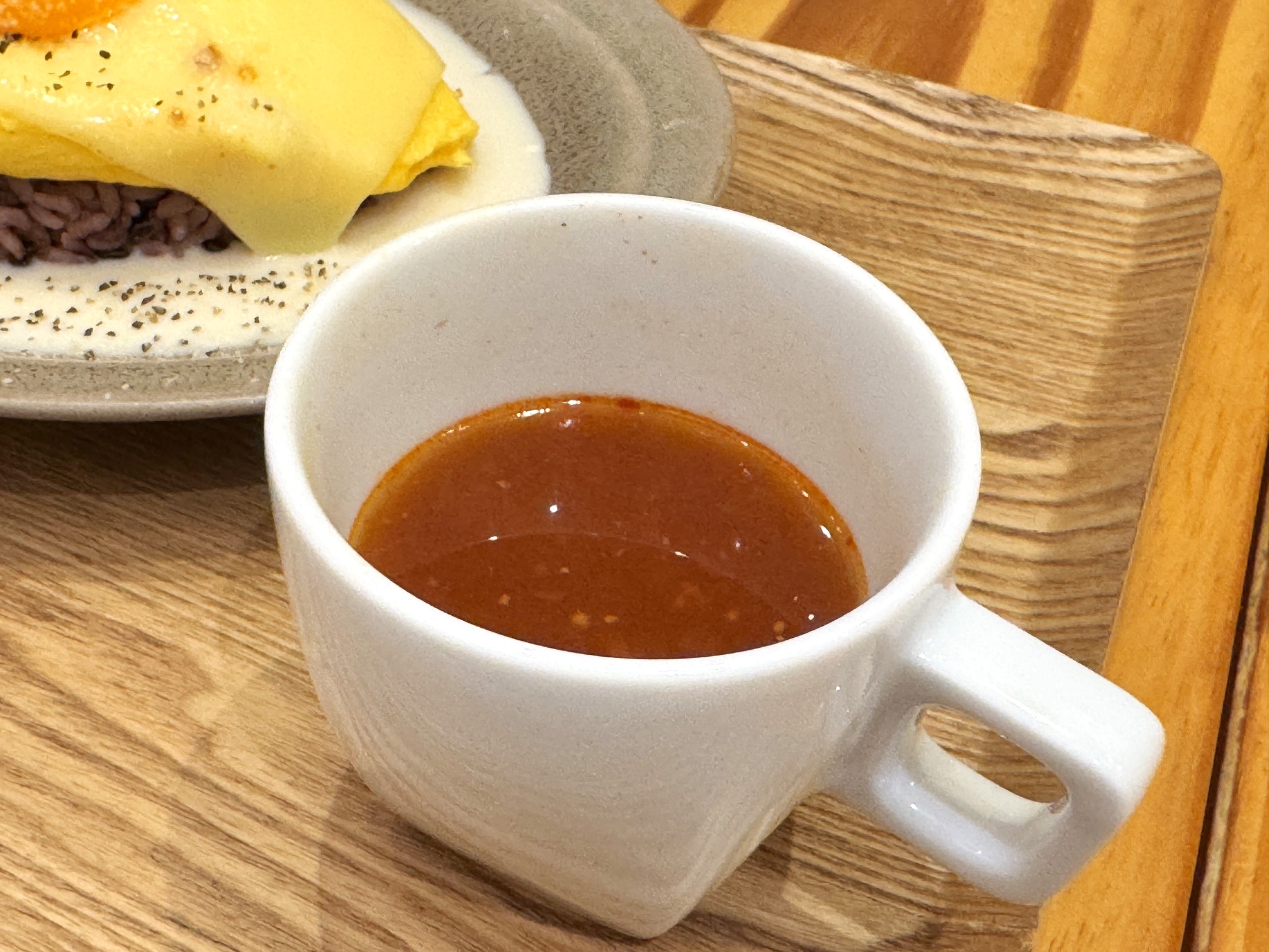 オムライスにはスープがついてくるので、汁物の水分でしっかりお腹が満たされます♪