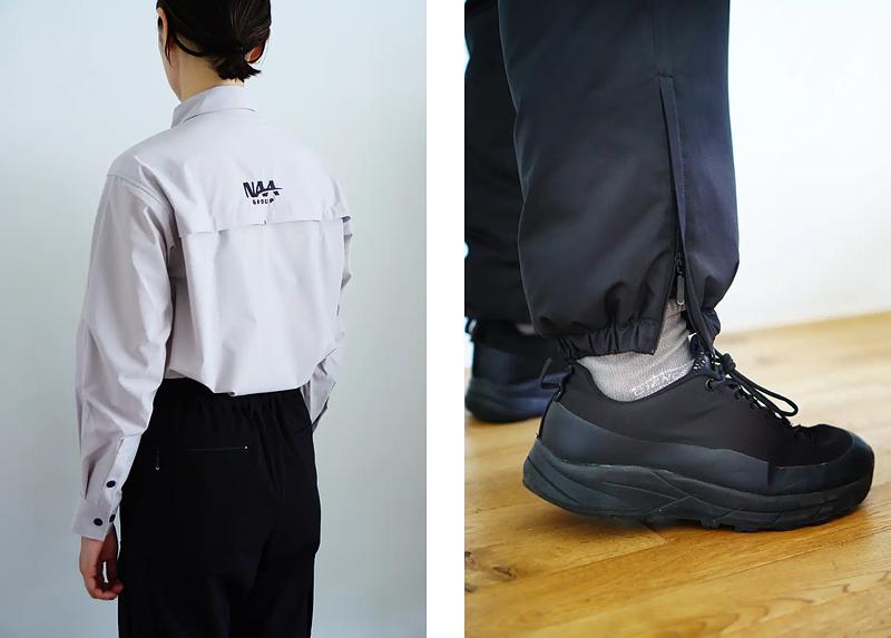 オリジナルカラーで染色し、肘のタックで可動域を広げて動きやすさにも配慮した「シャツ」や、新アイテムの「夏用ポロシャツ」には高ストレッチな鹿の子素材を使うなど、快適な着心地とデザイン性を両立させる工夫を施している。