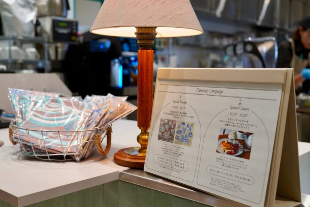 2025年10/31(金)-11/11(火)までの期間限定で、2,000円(税抜)以上のご利用をされた方に「J.S. PANCAKE CAFEオリジナルハンカチ」のプレゼントがもらえるそう!※ご利用1組様につき、おひとつのお渡しとなります。