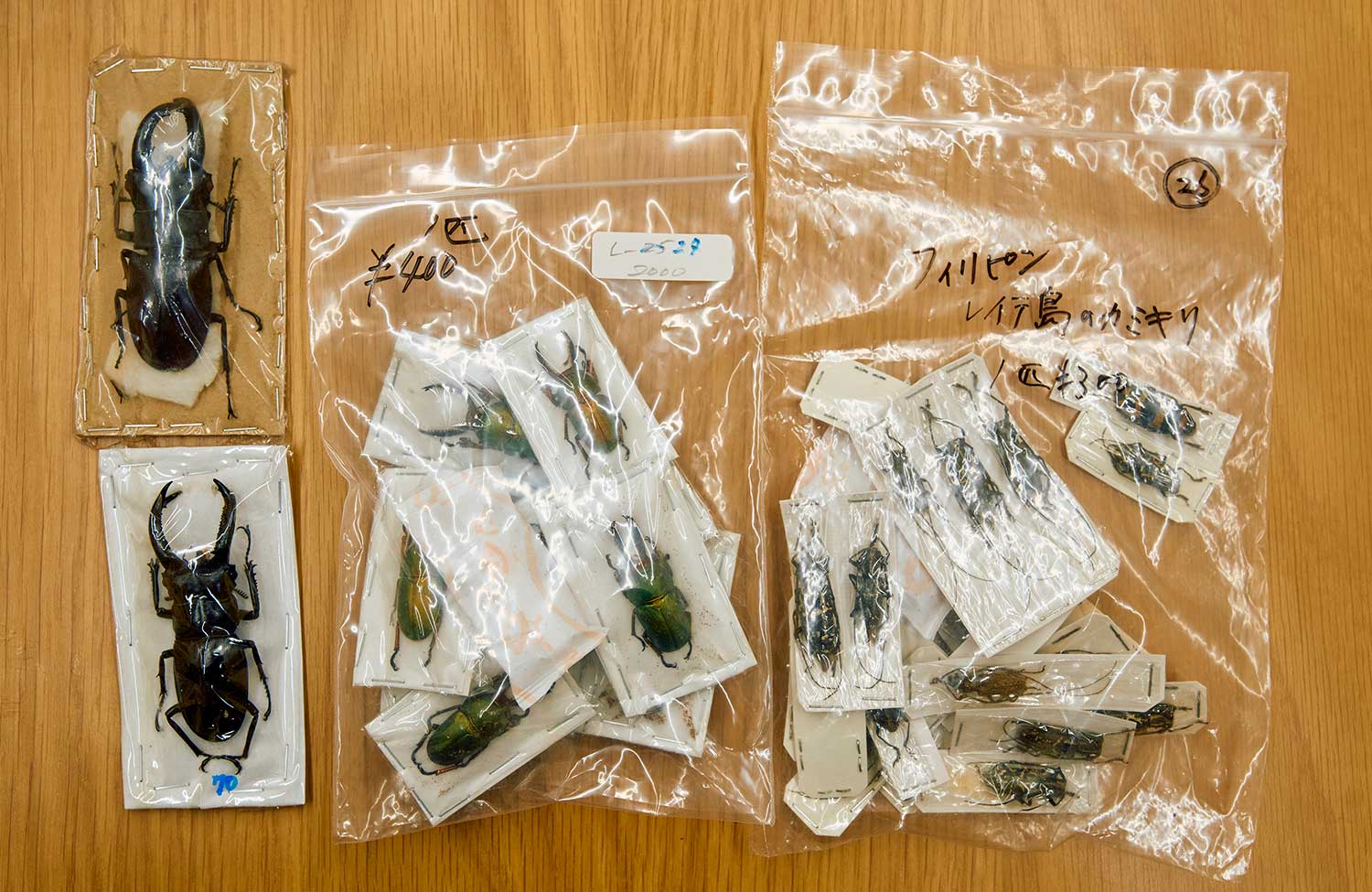予約制の標本教室には、隣県から来る人もいるという。「親の方に興味があって、連れてこられただけって子供もいますね」と笑うが、通年かつマンツーマンで標本作りを体験できる場は貴重だ。在庫の昆虫(標本作成用)でも標本作りができるとのこと。
