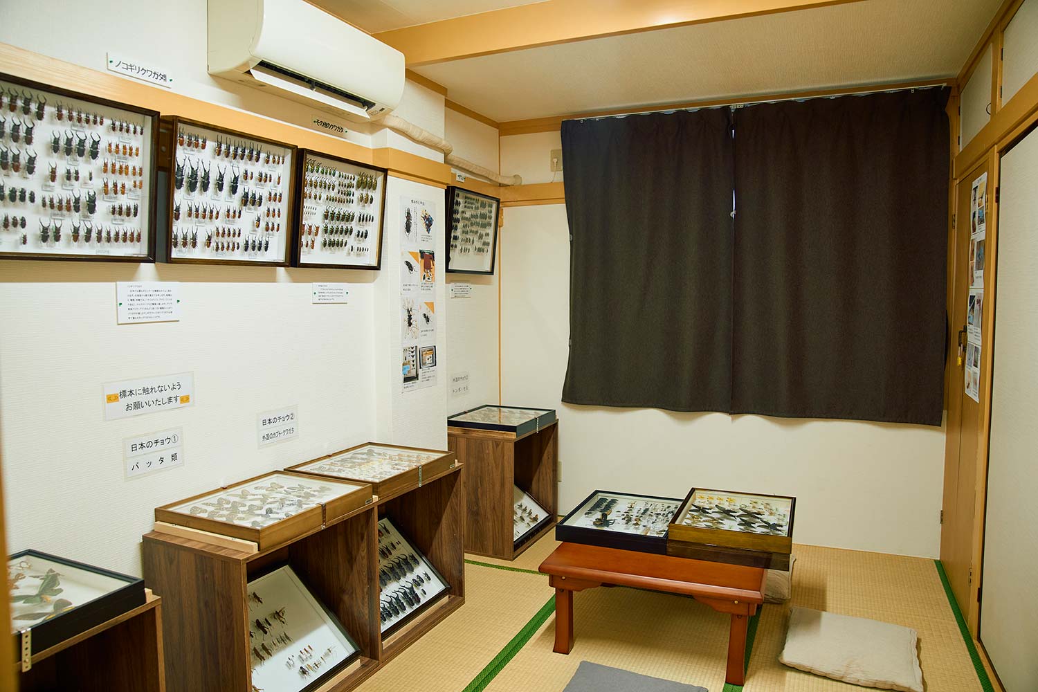 「入館料がかかりますけど、いいですか?」と、迎えてくれたのは標(ひょう)先生。この昆虫館にある標本の提供者だ。壁の両側に美しい標本が並び、いきなりときめいてしまったが、さらに2階と3階の和室にもたくさんの標本があって驚いた。この不思議すぎる空間は何なのか。成り立ちをうかがってみた。