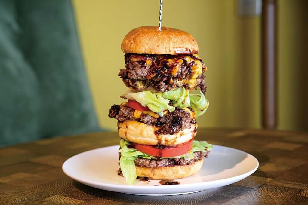 チャレンジメニューのキングスタワーバーガー(4,378円※要予約)。