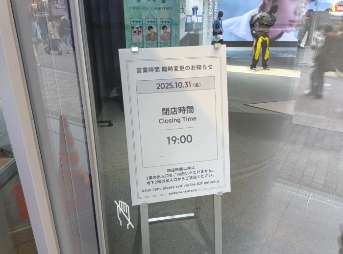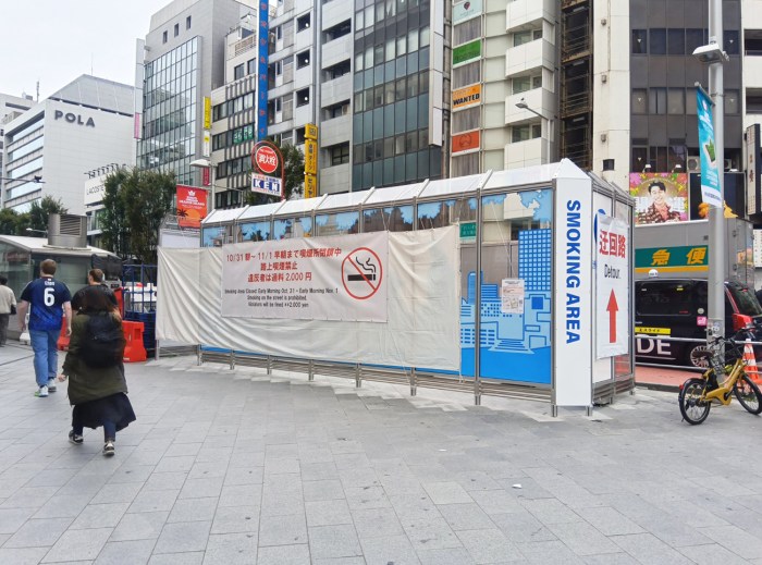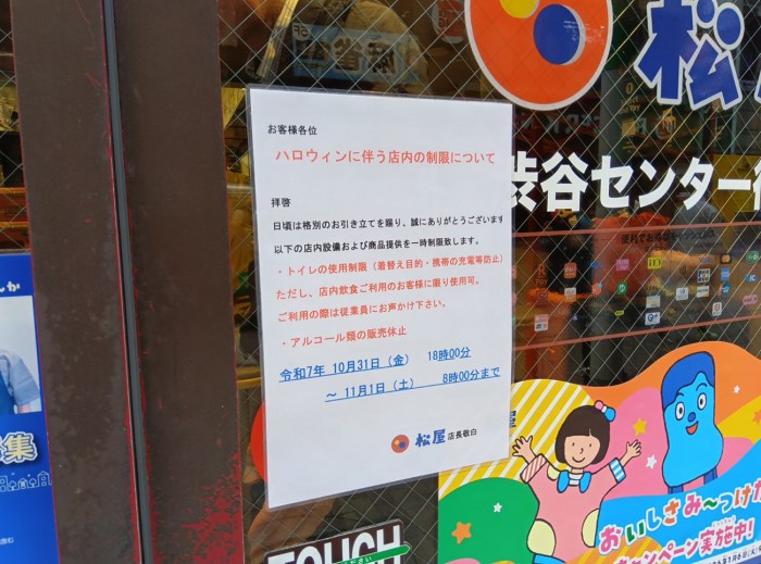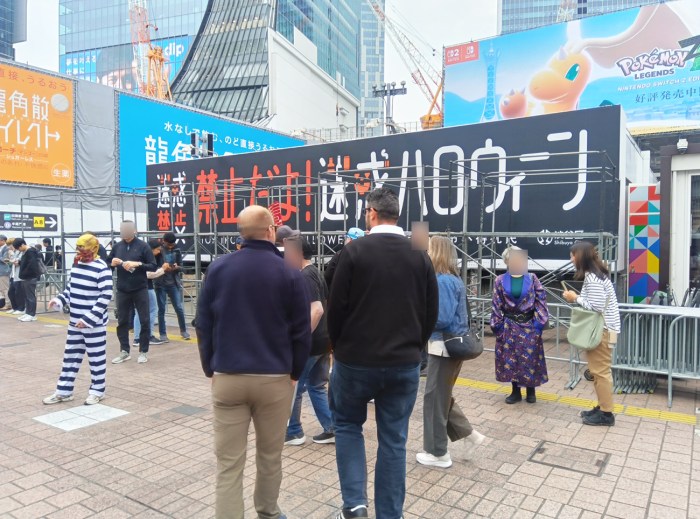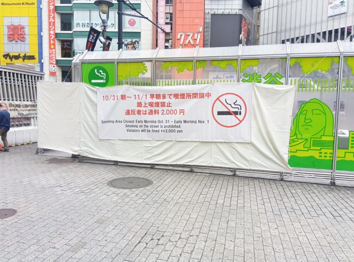 ちなみに、センター街以外で目立っていたのは、喫煙所の封鎖。スクランブル交差点の喫煙所も宮益坂側の喫煙所も10月31日朝から11月1日早朝まで閉鎖される。