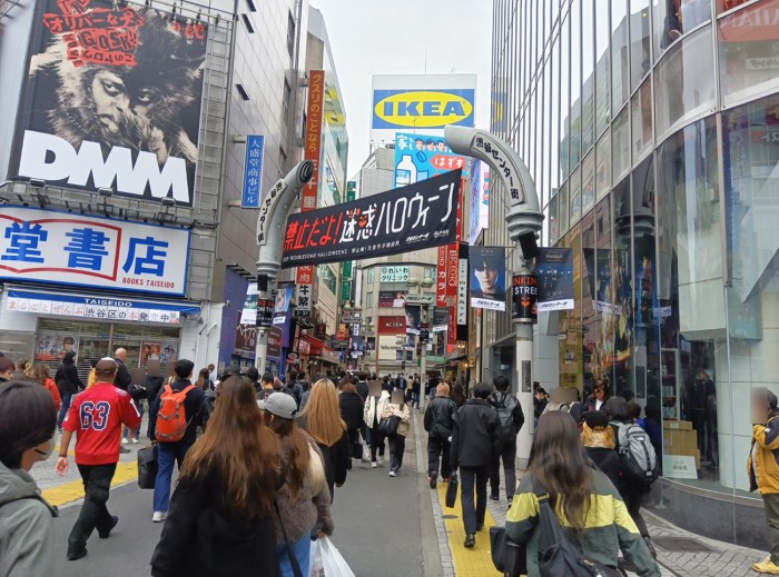 センター街を進むと、臨時で営業時間を変更する店が目立つ。TSUTAYAは19時クローズになるし、IKEAも17時まで。要はハロウィンが本番を迎える前の早仕舞いである。