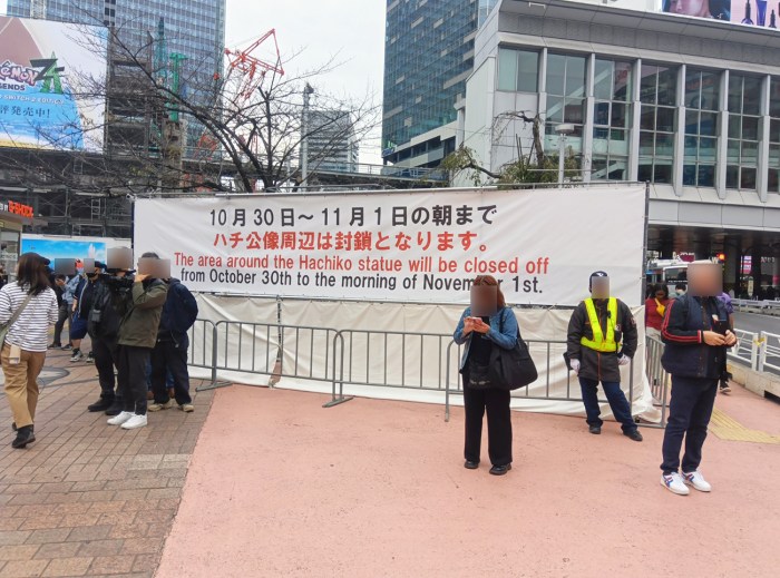 さらに、もはや恒例となりつつあるハチ公封鎖。封鎖の壁は高く、範囲も広いため、ハチ公の姿すら見えない。この2つの圧によりハチ公前広場が狭くなっていて、普段の人が集まる場所的な面影が皆無になっている。