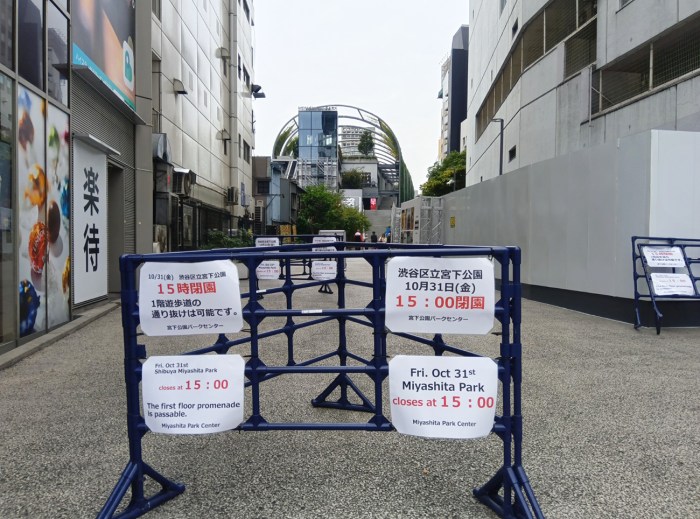 また、宮益坂側で言うと、宮下公園も15時閉園の早仕舞いとなっていた。