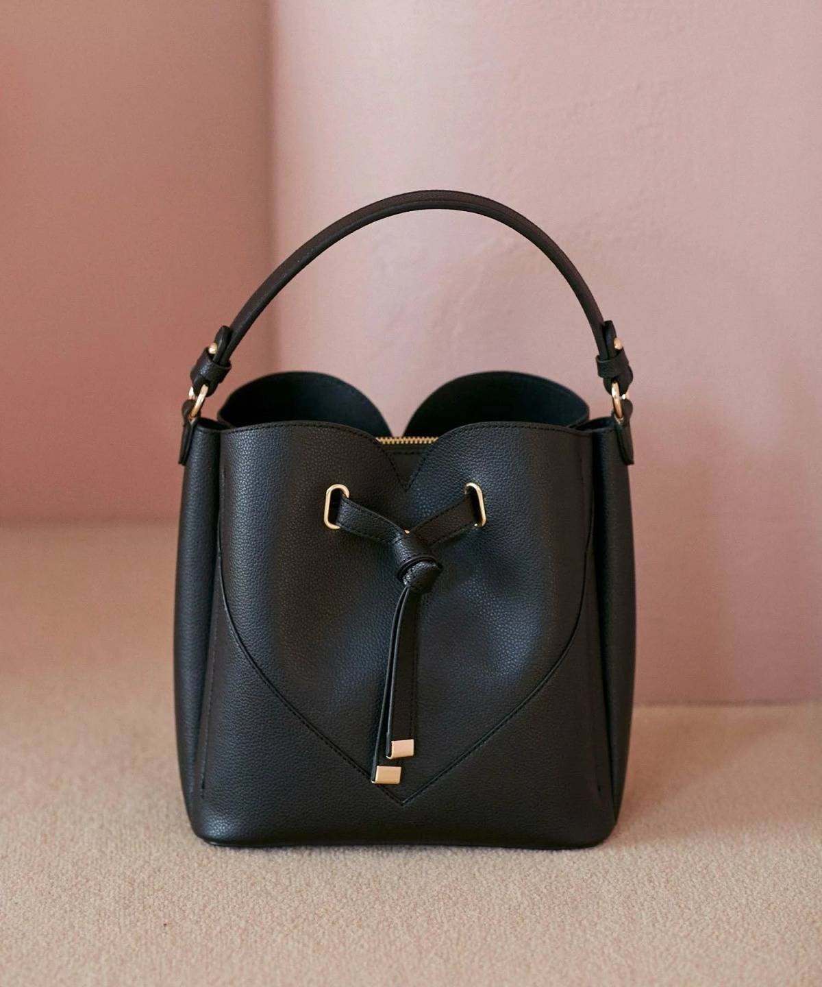 ハートカットデザインが特徴的なフェミニンな雰囲気のバッグ。