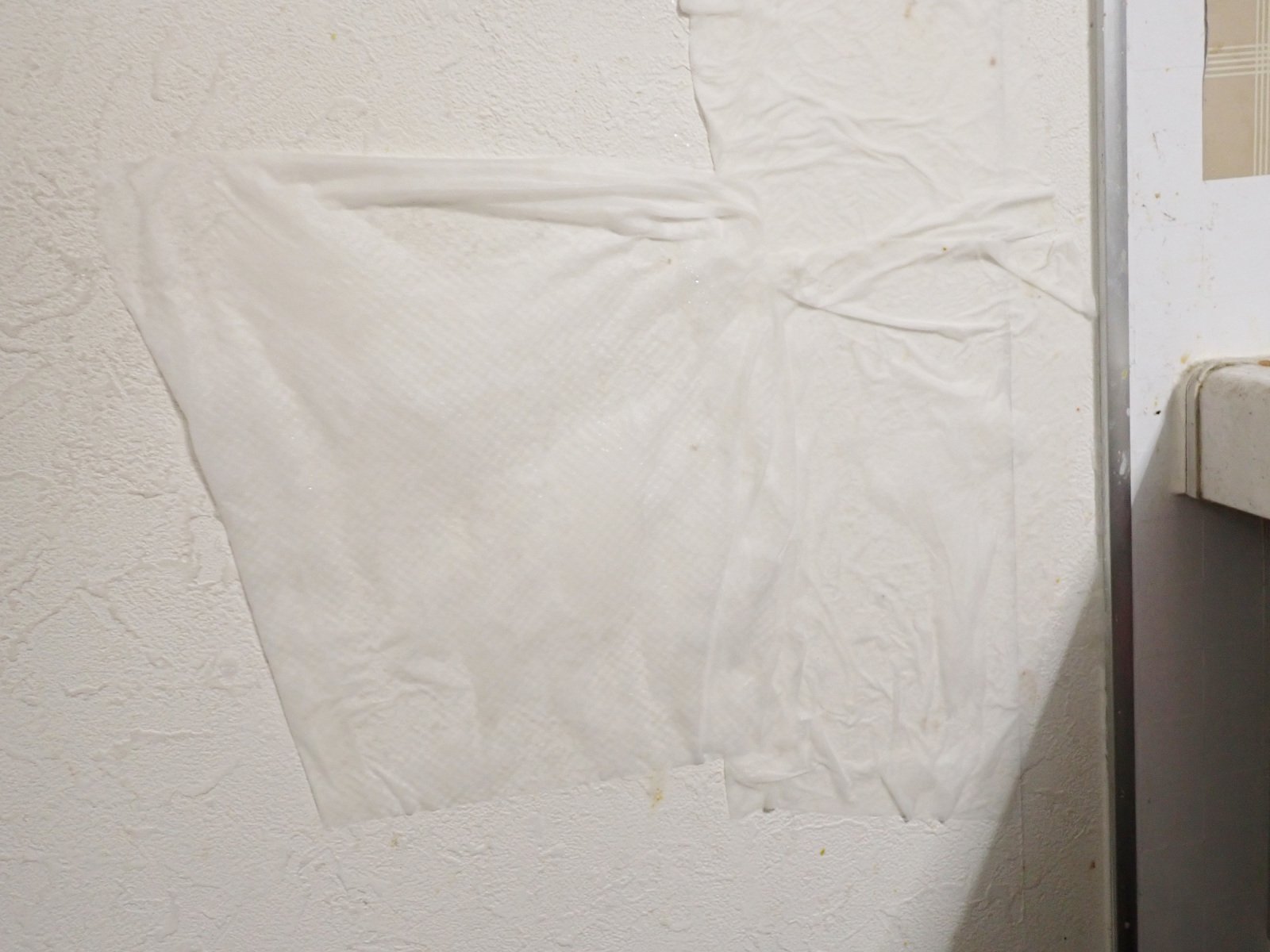 キッチンペーパーに洗剤水を染み込ませて貼る