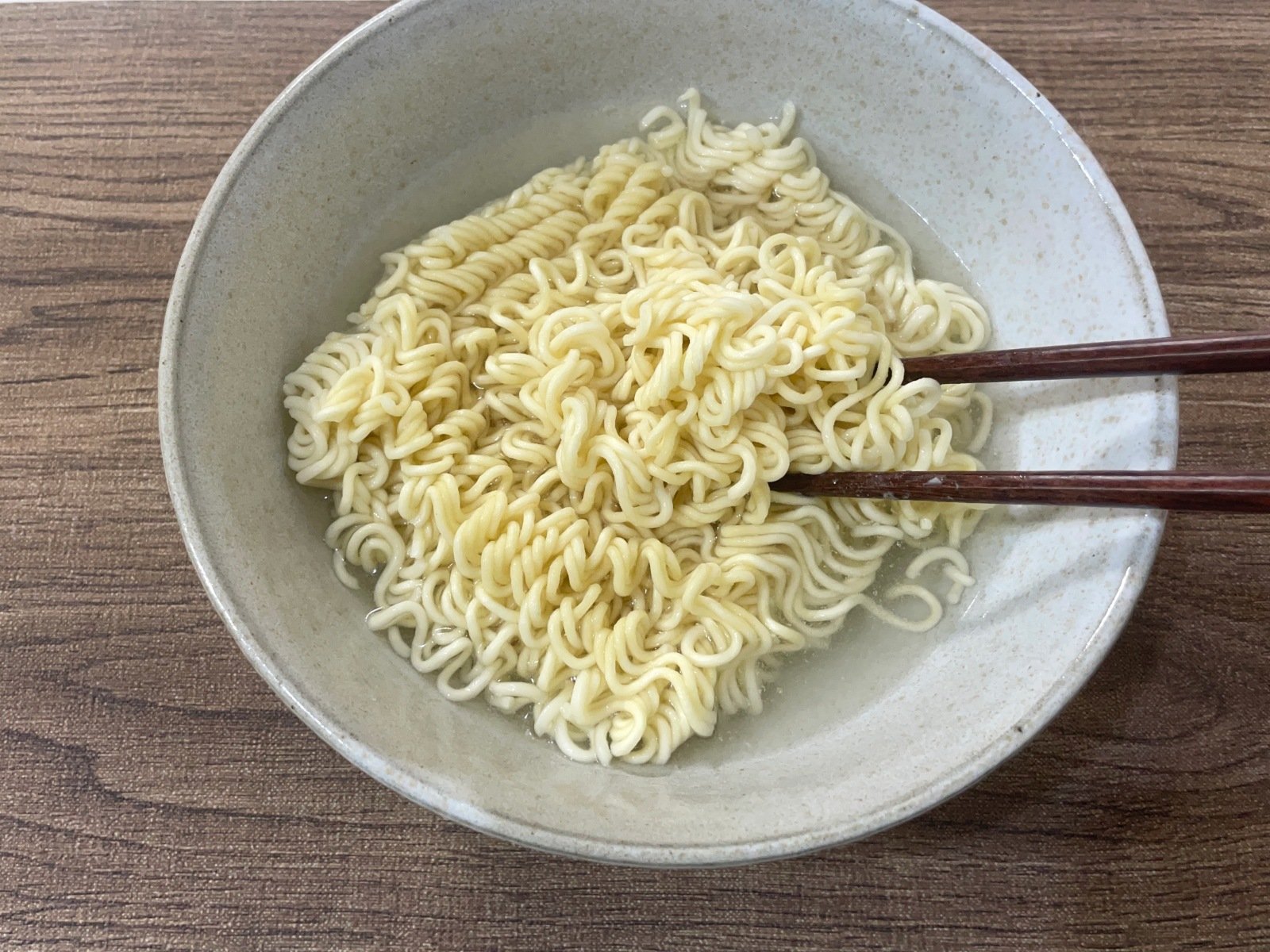 3.時間が経ったら、麺をほぐします。