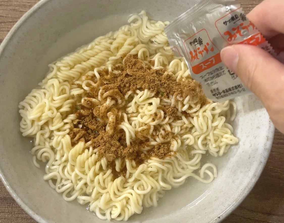 この方法は、粉末スープ付きの袋麺に適しています。油分を多く含む液体スープ付きの袋麺には不向きな場合があるので、注意してくださいね。
