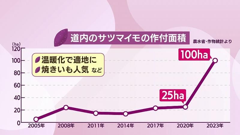 本州や九州で栽培が盛んなサツマイモは、温暖化と、ここ数年の焼いも人気も手伝って道内でも作付けする生産者が増えています。