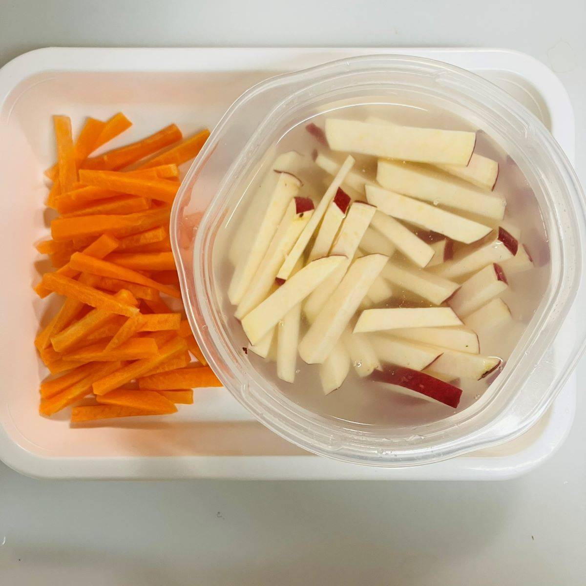 水にさらし、水気を切っておきます。